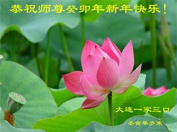 弟子感恩师尊的慈悲救度。一定以真善忍为标准,修好自己,救度众生。 辽宁省大连市甘井子区泉水一区一名女大法弟子代表丈夫、女儿恭祝师尊过年好!