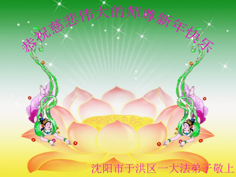 感恩师尊慈悲救度!弟子们一定要修好自己,多救人,勇猛精進,让师尊少一份操劳。 辽宁省沈阳市于洪区一大法弟子恭祝慈悲伟大的师尊新年快乐!