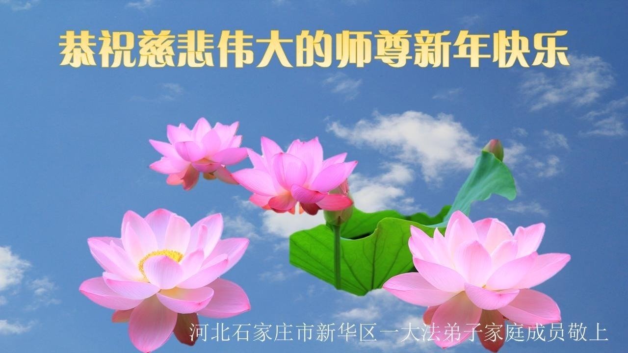 师尊辛苦了!感恩师尊救度之恩! 河北省石家庄辛集市一大法女弟子代表全家恭祝慈悲伟大的师尊新年快乐!