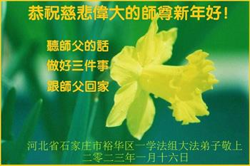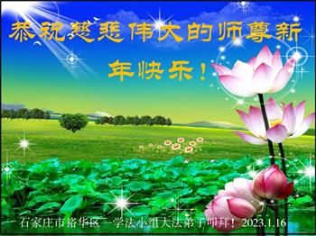 【明慧网二零二三年一月二十一日】 河北省石家庄市裕华区一学法组大法弟子恭祝慈悲伟大的师尊新年好!