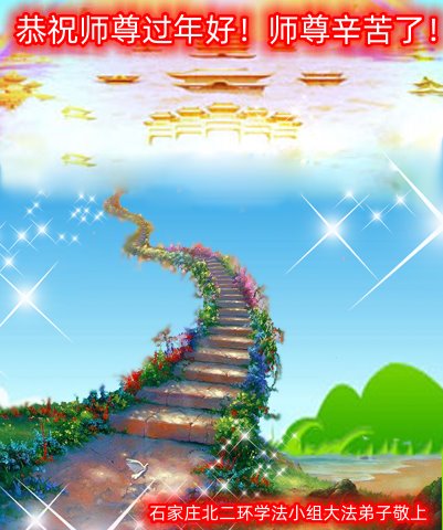 石家庄全体大法弟子给慈悲伟大的师尊拜年!师尊辛苦了!感恩师尊救度之恩! 河北省石家庄市北二环学法小组大法弟子恭祝慈悲伟大的师尊过年好!