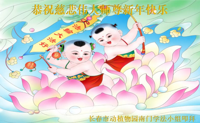 在新年到来之际,恭祝慈悲伟大的师尊过年好!师尊辛苦了! 法轮大法好!真善忍好! 弟子会努力做好三件事,报答师尊慈悲救度之恩,谢谢师尊! 吉林省长春市动植物园南门学法小组大法弟子恭祝慈悲伟大的师尊新年快乐!