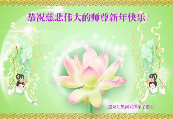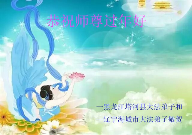 在这喜庆传统节日来临之际,我们学法小组大法弟子恭祝慈悲伟大的师父过年好! 我们能走到今天,离不开师父的一路保护与加持。在新的一年里,我们会更加努力做好三件事,跟上正法進程。 黑龙江省勃利县一学法小组全体大法弟子叩拜 一黑龙江塔河县大法弟子和辽宁省鞍山市海城市一大法弟子恭祝师尊过年好!
