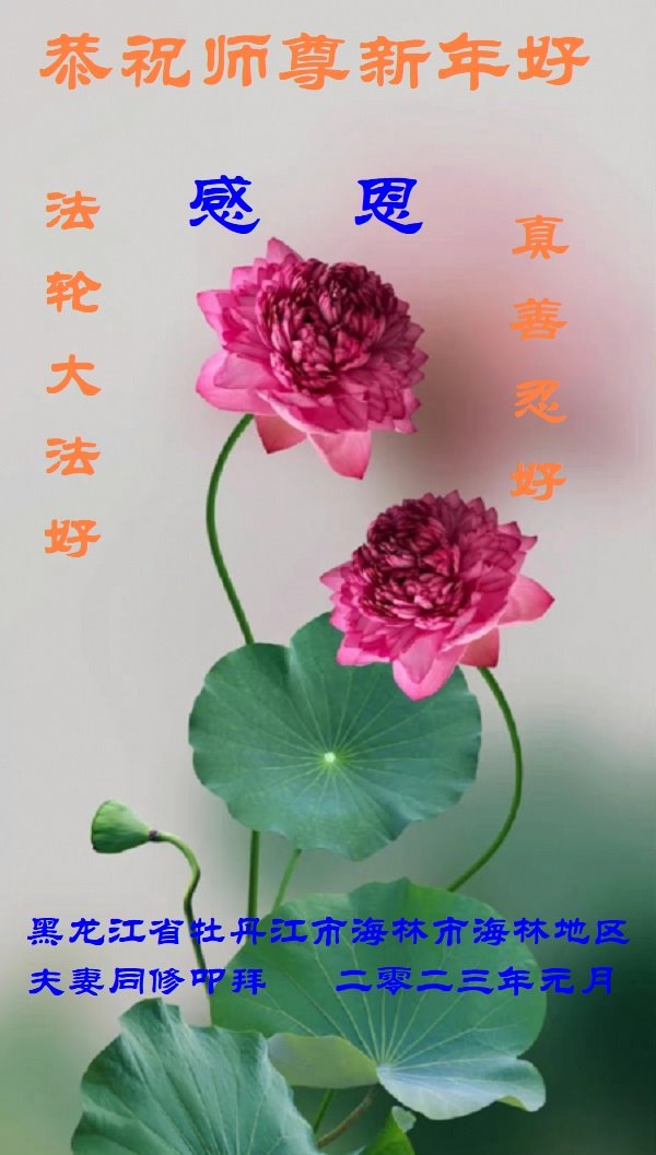 黑龙江省牡丹江市海林市海林地区一学法小组大法弟子恭祝师尊过年好! 黑龙江省牡丹江市海林市海林地区一对夫妻同修恭祝师尊新年好!