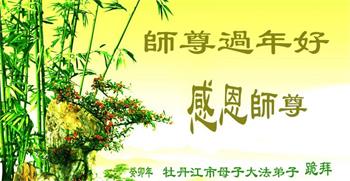 感恩师尊! 牡丹江市一对母子大法弟子跪拜 黑龙江省七台河市勃利县一大法弟子恭祝慈悲伟大的师父过年好!