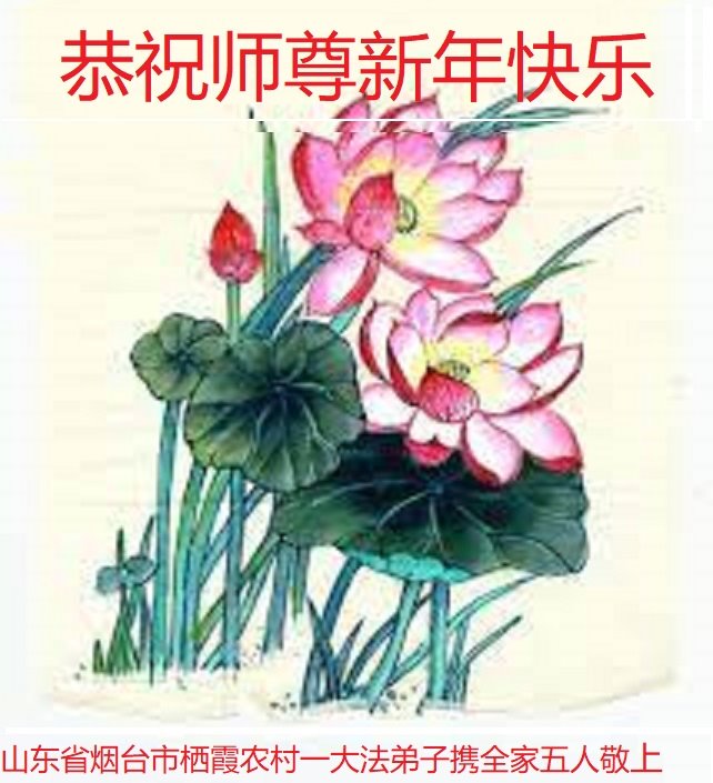 山东省烟台市栖霞一名农村大法弟子携全家五人恭祝师尊新年快乐!