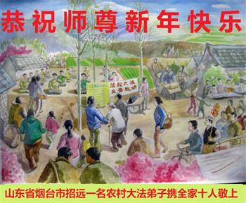 山东省烟台市招远一名农村大法弟子携全家十人恭祝师尊新年快乐!