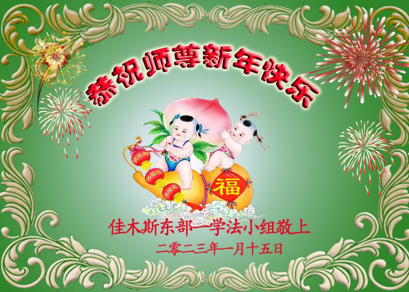 恭祝师父过年好! 新年到,放鞭炮。 祝师尊,欣欢笑。 感师恩,谢师恩。 正法路,向前奔。 学好法,正念强。 多救人,报师恩。 初一早,拜师尊。 祝师父,过年好! 佳木斯东部一学法小组给师父拜年! 黑龙江省佳木斯大法弟子恭祝师尊过年好!
