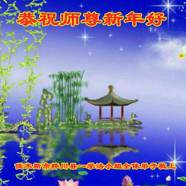 黑龙江省佳木斯市桦川县一学法小组全体大法弟子恭祝师尊新年好!