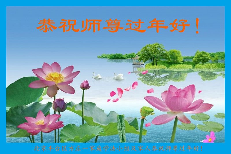 北京丰台区方庄一家庭学法小组及家人恭祝师尊过年好!