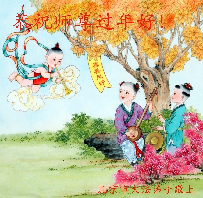 法轮大法好!真善忍好! 北京市海淀区一大法弟子给师尊拜年!师尊过年好!