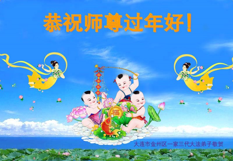 【明慧网二零二三年一月二十一日】 辽宁省大连市金州区一家三代大法弟子恭尊师尊过年好!