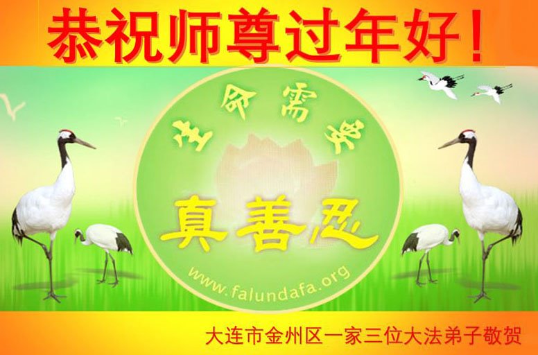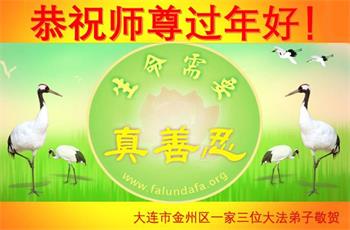 辽宁省大连市金州区一家三位大法弟子恭祝师尊过年好!