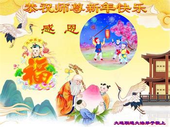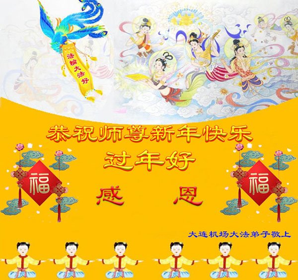 弟子感恩师尊慈悲苦度!师尊辛苦了! 盼望早日法正人间,灭尽共产邪灵及中共恶党,让正义永存洪宇间。 辽宁省大连市甘井子区大法弟子恭祝师尊过年好!