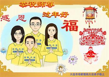 辽宁省大连一家三口大法弟子恭祝师尊过年好!