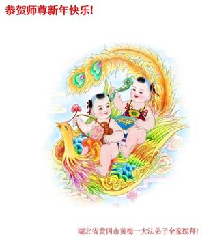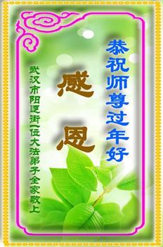 湖北省武汉市阳逻街一位大法弟子全家恭祝慈悲伟大的师尊过年好!