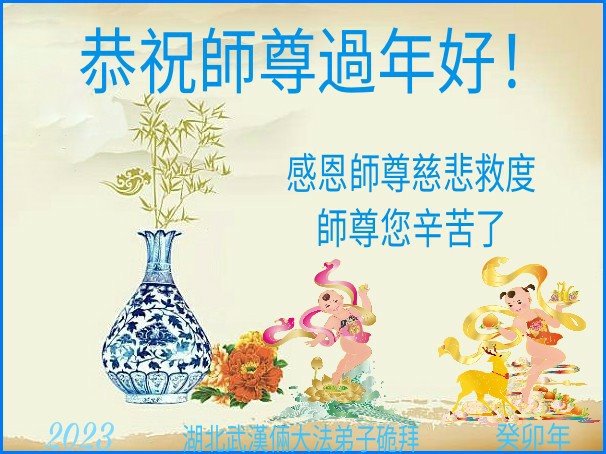 【明慧网二零二三年一月二十一日】 湖北省武汉市蔡甸区大法弟子恭祝师尊过年好!
