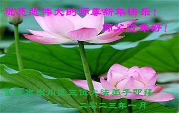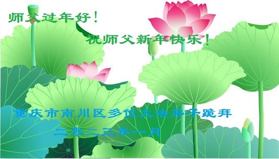 【明慧网二零二三年一月二十一日】 重庆一家庭学法小组大法弟子恭祝师父新年快乐!