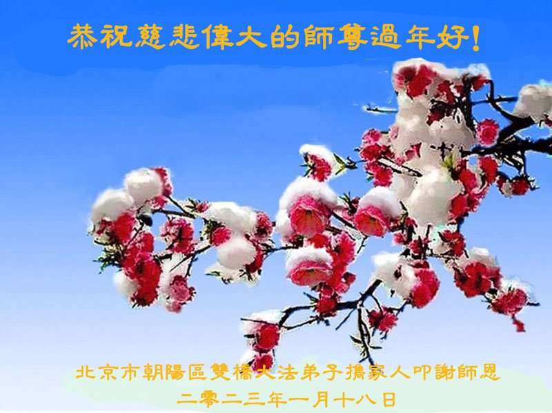 【明慧网二零二三年一月二十一日】 北京市朝阳区双桥大法弟子携家人恭祝师尊过年好!感谢师父慈悲救度!