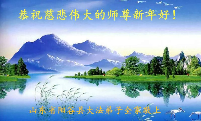 山东省聊城市阳谷县大法弟子全家恭祝慈悲伟大的师尊新年好!
