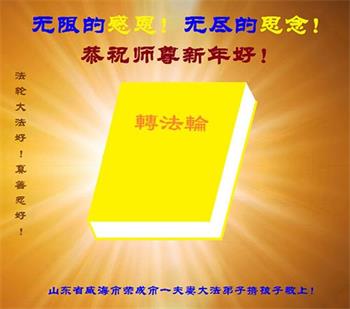 山东省威海市荣成市一夫妻大法弟子携家人恭祝师尊新年好!