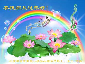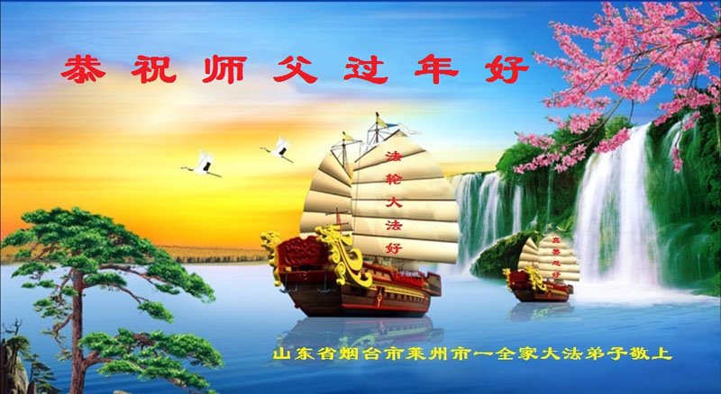 慈悲的师尊您好!感恩您的慈悲救度和佑护!在节日来临之际恭祝师尊过年好! 山东省烟台市莱州市一全家大法弟子恭祝师父过年好!