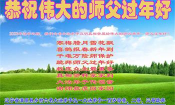 在师尊法正天体已结束,向法正人间过渡之际,我们迎来了中国癸卯大年。 在此,弟子们向师尊道一声:弟子们感恩师尊慈悲救度,弟子给师尊拜年,恭祝师尊新年快乐! 黑龙江省富裕县二道湾镇农村大法弟子恭祝师尊过年好!