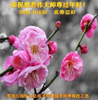 师父您辛苦了!弟子仅以虔诚之心叩拜师尊!感恩师尊的慈悲救度!盼望师尊多一点欣慰,少一点操劳。新年伊始弟子要以法为师,做好三件事,兑现好自己的誓约。 黑龙江省海伦市全体农村乡镇大法弟子恭祝慈悲伟大的师尊过年好!