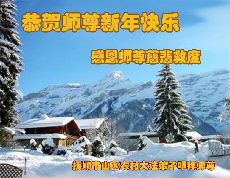 我是农村老年大法弟子,在二十多年的修炼中感恩师尊一路看护,才有弟子的今天。在新的一年里,弟子会多学法多去执着,在大法修炼中再精進。 谢谢师尊慈悲苦度!叩拜师尊 抚顺市山区农村一学法小组弟子恭祝师尊新年快乐!