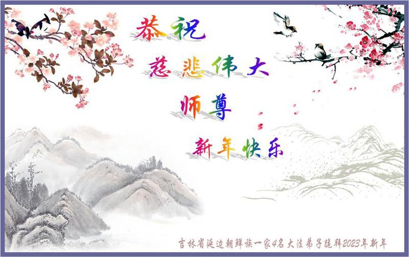 师尊好!师尊辛苦了! 在这十恶毒世中疫劫压顶之危难时刻,是伟大的师尊为弟子和众生撑持一片蓝天,慈悲保护我们和亲人乃至一方苍生平安渡过了眼前的劫难。师尊的无量恩德,就如日照长空,温暖着我们的心房,给众生永远的希望! 在中国癸卯年新年即将到来之际,我们衷心恭祝伟大慈悲的恩师过年好!衷心恭祝师尊新年快乐! 无比感恩师尊为弟子和众生年复一年的巨大承受与付出,无比感恩师尊佛恩浩荡! 弟子携亲人们叩拜恩师 吉林省延边朝鲜族一家四名大法弟子恭祝慈悲伟大师尊新年快乐!