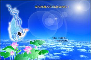 尊敬的师父,弟子在这里给您磕头了!弟子用尽人间的语言也无法表达师父的洪恩。在新的一年来临之际,弟子只有努力做好三件事,才能不辜负师尊的慈悲苦度。 内蒙古一对母女大法弟子敬上 新疆维吾尔自治区奎屯大法弟子恭祝慈悲伟大的师尊过年好!