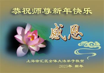 【明慧网二零二三年一月二十二日】 上海南汇全体大法弟子恭祝师父新年快乐!
