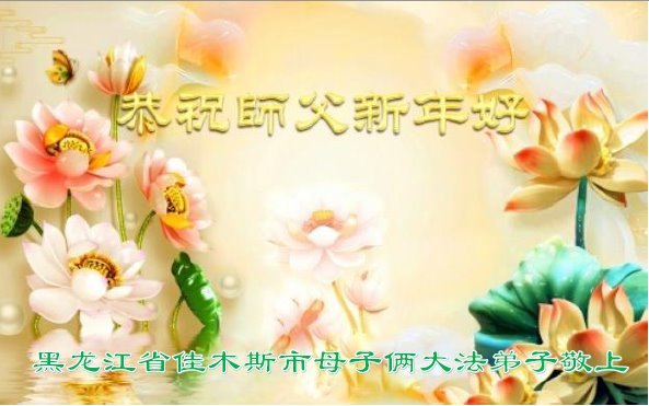 黑龙江省佳木斯母子俩大法弟子恭祝师尊过年好!