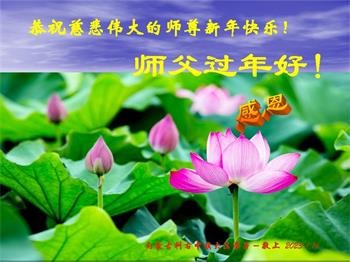 慈悲的师尊好! 旧的一年过去了,新的一年来到了。现在,弟子们不同成度的感受到了大疫的凶猛,感受到了世人在面临的最大危险,切身体会到了佛法的威严,更加认识到正法修炼的严肃和时间的紧迫。 感恩师尊在真正的大劫来临前,及时点化弟子们要真心学法、修炼,在叫醒消沉懈怠的弟子最后的时刻,要精神起来做好该做的,我们被师尊的慈悲再次被震醒,弟子们将严格的遵照大法的要求,在最危险的时刻,决心更要做好救度世人的大事,更加理性的去传播大法的真相和美好。 慈悲的师尊弟子们想念您,恭贺您过年好! 叩首跪拜!合十 2023年1月5日 内蒙古自治区通辽地区青年大法弟子恭祝慈悲伟大的师尊新年好!