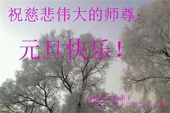 师尊您好!弟子谨遵师尊教诲,一定要精進实修,做好师尊要求的三件事,珍惜师尊以巨大的承受给延续来的时间,弟子才有机会修炼,在今后的修炼中做到精進、精進、再精進! 叩拜师尊!遥拜师尊! 吉林市高新区一学法小组全体大法弟子恭祝慈悲伟大的师尊过年好!