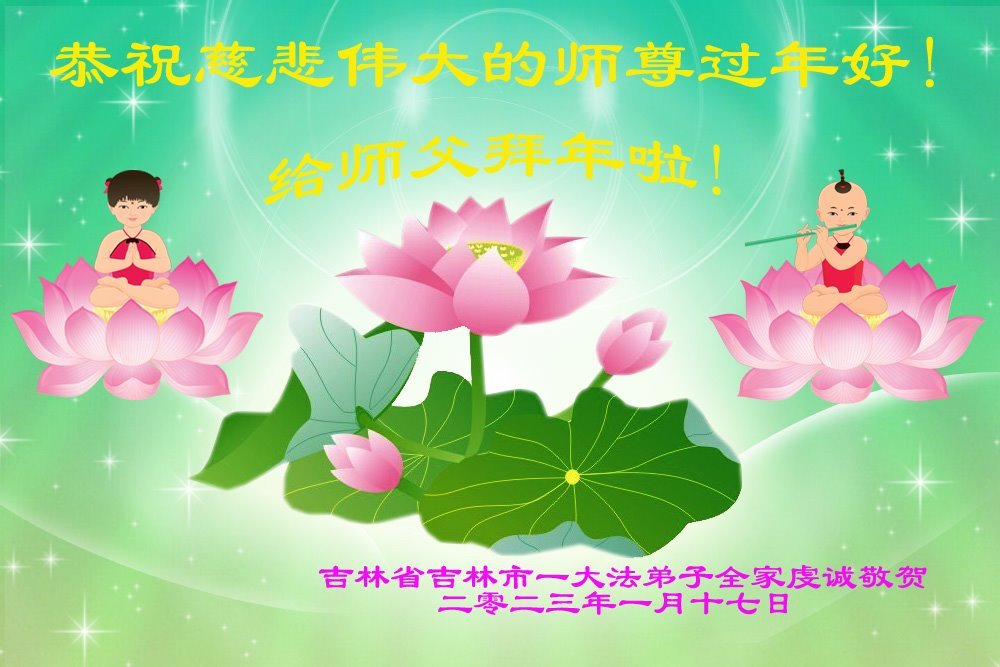 【明慧网二零二三年一月二十二日】 吉林省吉林市一大法弟子全家恭祝慈悲伟大的师尊过年好!