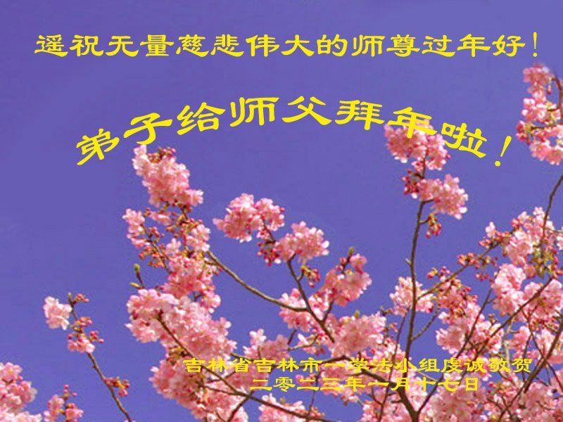 遥祝无量慈悲伟大的师尊过年好!弟子给师父拜年啦!拜年感师恩 师尊一念悯 穹宇沐天恩 天体逢坏灭 大法造化深 洪难智慧解 旧势妄费心 慈悲消众业 苍生得幸存 遇难师尊救 弟子谢洪恩 徒儿知精進 学法渐归真 内修守心性 正念灭魔魂 大疫遵师命 助师多救人 吉林省吉林市一学法小组虔诚敬贺 二零二三年一月十八日 吉林省吉林市大法弟子恭祝师父过年好!