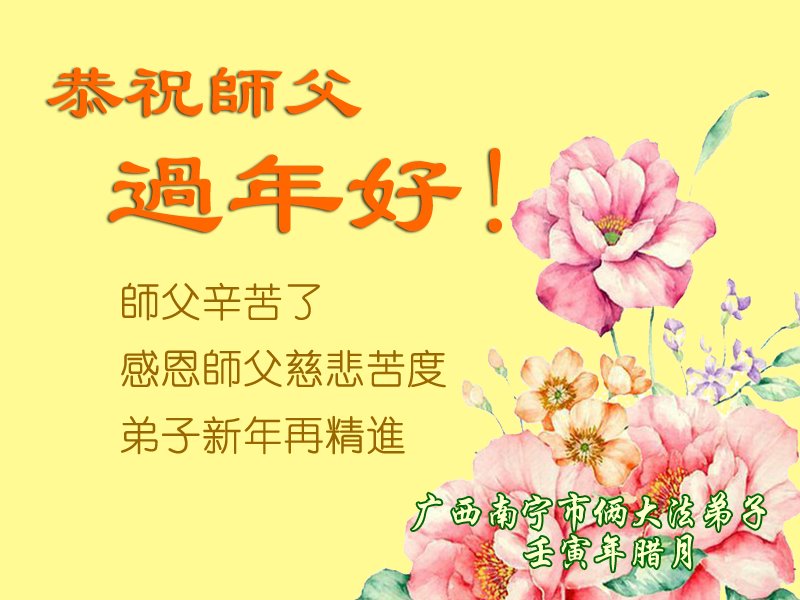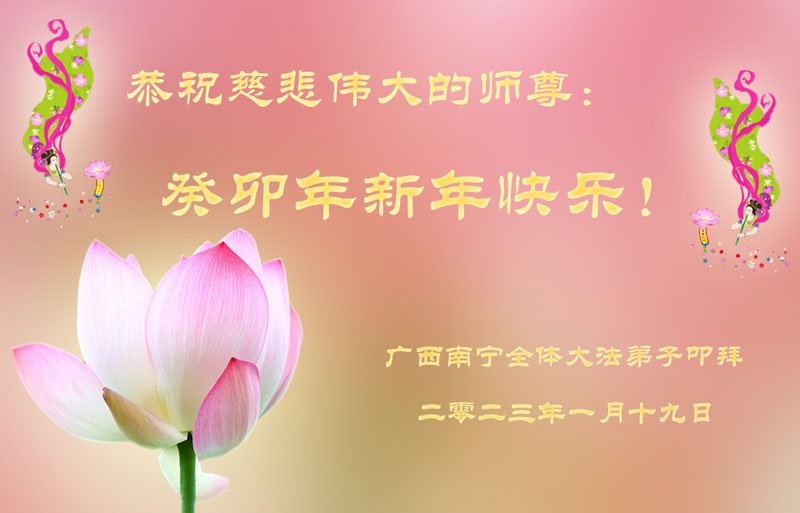 【明慧网二零二三年一月二十二日】 广西壮族自治区南宁市俩大法弟子恭祝慈悲伟大的师父过年好!