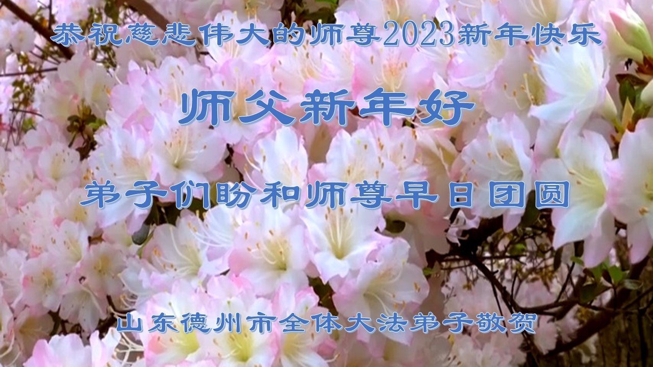 恭祝师尊过年好! 谢谢师尊的慈悲救度!弟子唯有修好自己、做好三件事,才能不负师尊的苦心救度。 山东德州一大法弟子给师尊拜年! 二零二三年一月十日 山东德州市德城区全体大法弟子恭祝慈悲伟大的师尊2023新年快乐!