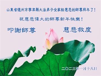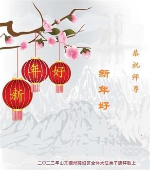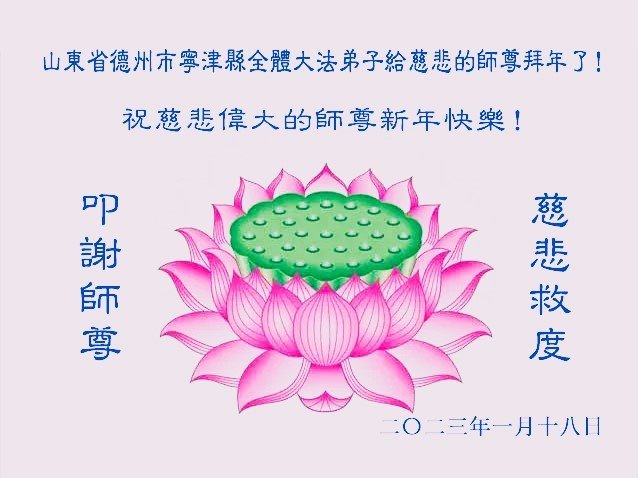 【明慧网二零二三年一月二十二日】 山东省德州市宁津县全体大法弟子给慈悲伟大的师尊拜年!恭祝师尊新年快乐!