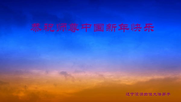 值此新年到来之际,弟子代表我们学法小组及家人和朋友,向慈悲伟大的师尊祝以诚挚的问候!恭祝慈悲伟大的师尊新年快乐! 弟子一定要按照师尊的教诲,在剩下的宝贵时间里以法为师,做好三件事,圆容好整体,随师法正人间!圆满随师还! 辽宁朝阳市凌源市大法弟子恭祝师尊新年快乐!
