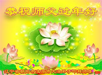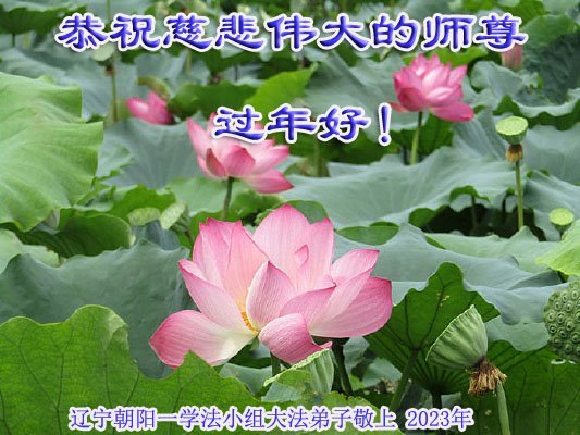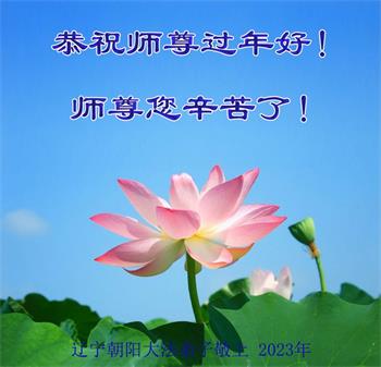 慈悲伟大的师尊好!我们是九九年“七·二零“之前走入修炼的大法弟子。二十多年来,虽然历经风雨和魔难,在师尊的慈悲保护下,我们初心未改,矢志不渝。在今后有限的时间里,我们在助师正法,救度众生的路上,砥砺前行,兑现史前誓约。叩拜师尊! 辽宁朝阳大法弟子恭祝师尊过年好!感恩师尊慈悲救度!
