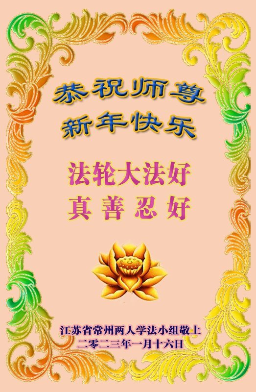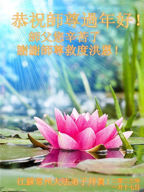 恭祝师尊2023年大年快乐! 师父:在2023年这一年里我们更要实修自己。 中国大陆江苏省苏州市大法弟子敬上 2023年1月18日。 江苏常州大法弟子恭祝师尊过年好!