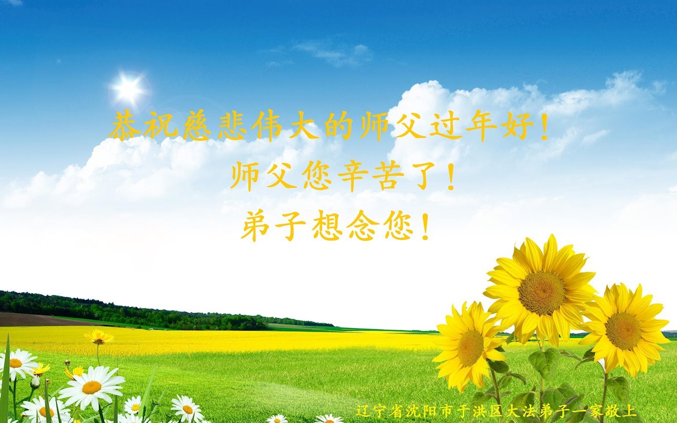 恭祝慈悲伟大的师父过年好! 辽宁省沈阳市全体大法弟子向师父叩拜 辽宁省沈阳市于洪区一家大法弟子恭祝慈悲伟大的师父过年好!