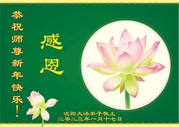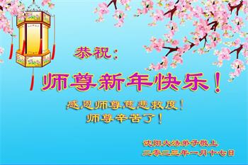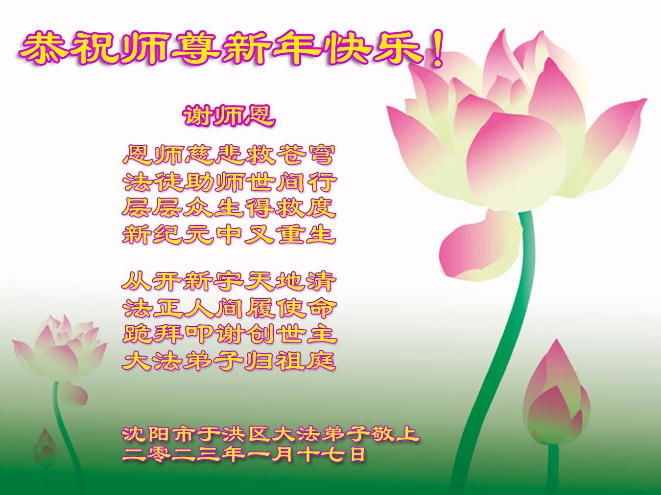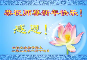 恭祝师尊过年好! 众生危难师救度 感恩师尊语难述 穹宇更新荡污浊 万物重生天地固 沈阳大法弟子叩拜 2023年1月 辽宁省沈阳大法弟子恭祝师尊过年好!