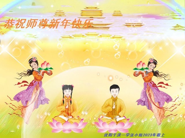 感恩师尊慈悲苦度! 沈阳大法弟子跪拜 2023年1月 辽宁沈阳市于洪区—学法小组大法弟子恭祝师尊新年快乐!