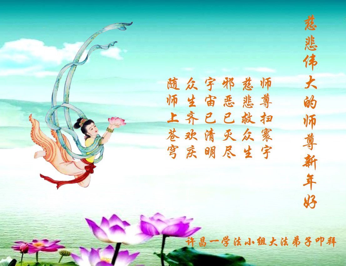 师父辛苦了!谢谢师尊慈悲救度! 河南省许昌市一学法小组大法弟子恭祝师尊新年快乐!