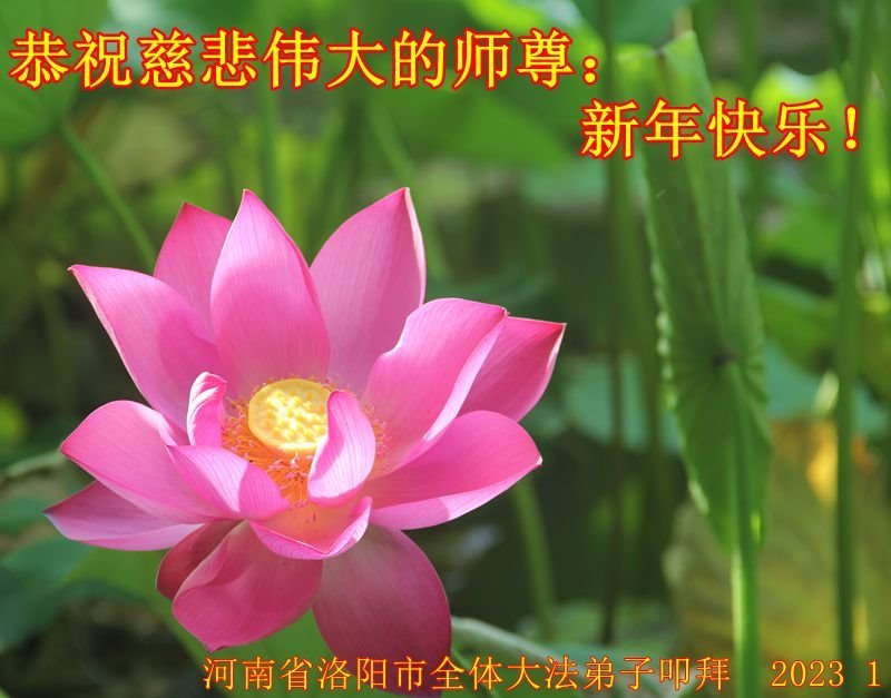 恭祝师尊新年快乐!法轮大法好!真善忍好! 在新的一年里,要勇猛精進,多修心,做好三件事,跟师父回家。 禹州三位大法弟子跪拜师尊 2023年中国新年 河南省洛阳市全体大法弟子恭祝师尊新年快乐!