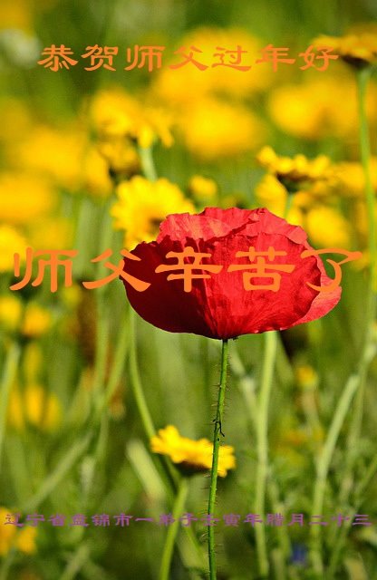 恭祝师尊过年好!弟子及全家无法用语言感恩师尊,只能用精進、精進、再精進来回报师尊!谢谢师父! 弟子叩拜! 辽宁省盘锦大法弟子恭祝师尊新年快乐!
