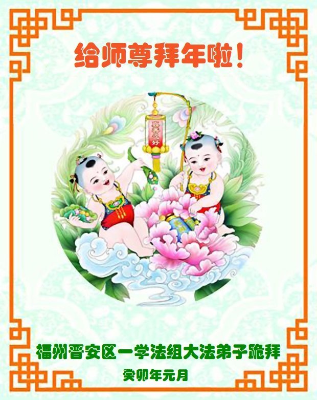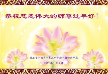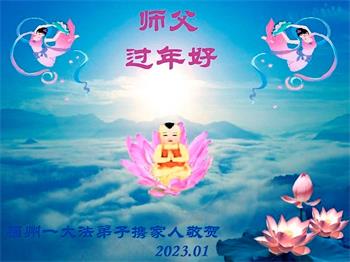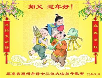 莆田市大法弟子敬贺 二零二三年一月十三日 福建省福州市一大法弟子携家人恭祝师父过年好!